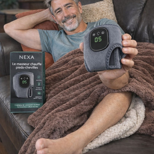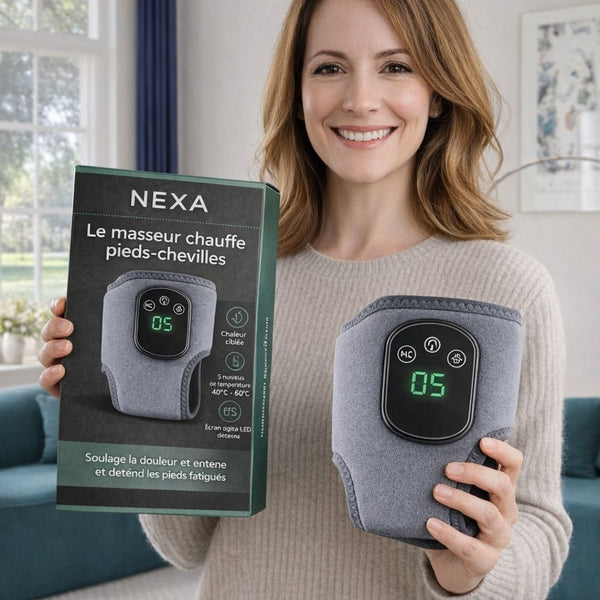 Après de longues journées debout, en mouvement ou assis, les douleurs aux pieds et aux chevilles peuvent devenir épuisantes. Le masseur chauffant NEXA™ diffuse une chaleur ciblée qui aide à détendre les muscles, améliorer la circulation et réduire les tensions. Avec ses 5 niveaux de température réglables et son écran digital facile à utiliser, profitez d’un moment de relaxation et de récupération à domicile.